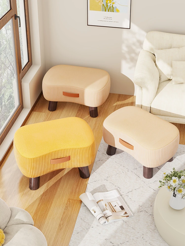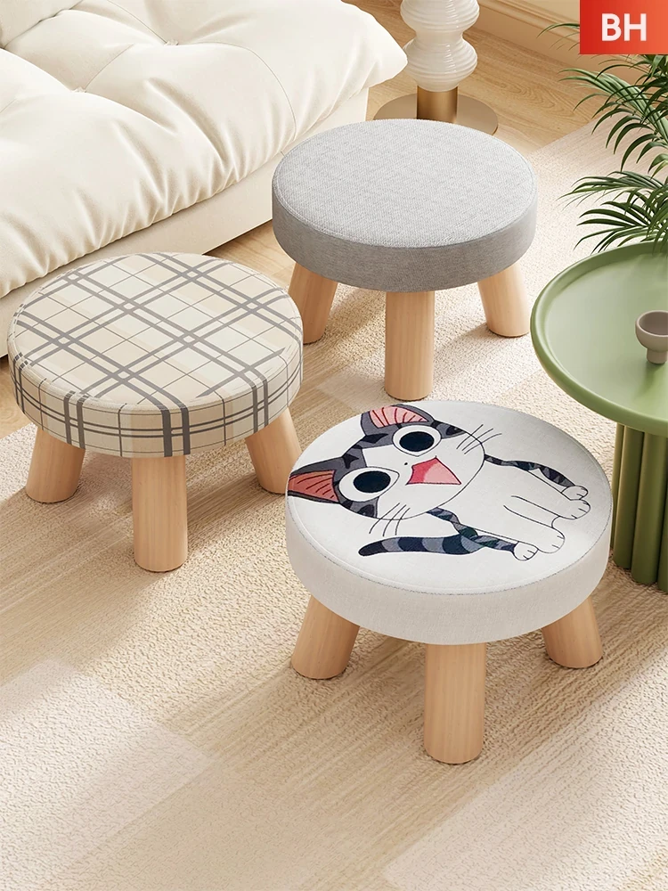 家用小さなスツール|玄関で靴を履き替えるための便利な一品|リビングやソファにぴったりな実木製スツール|柔らかいクッション付きで快適な足置きにも最適!
