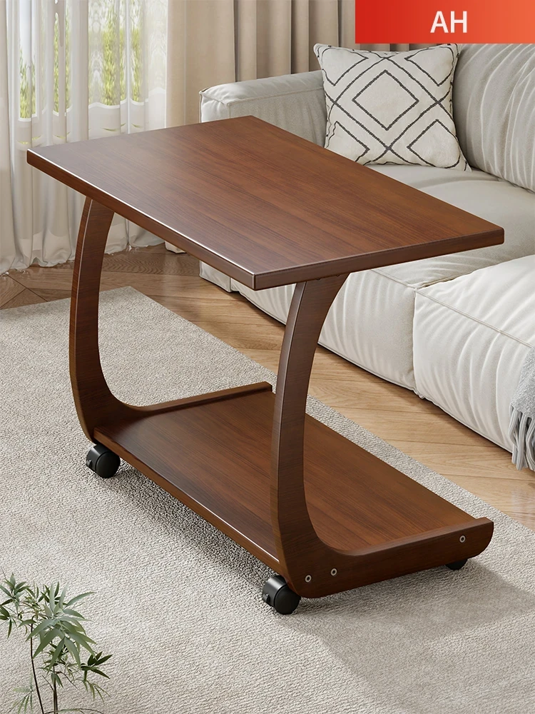 移動式の無垢材ソファサイドテーブル、キャスター付きミニコーヒーテーブル!小さなリビングや狭いスペースに最適なスタイリッシュな角テーブル。家族や友人とのくつろぎタイムにぴったり!