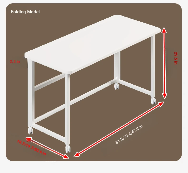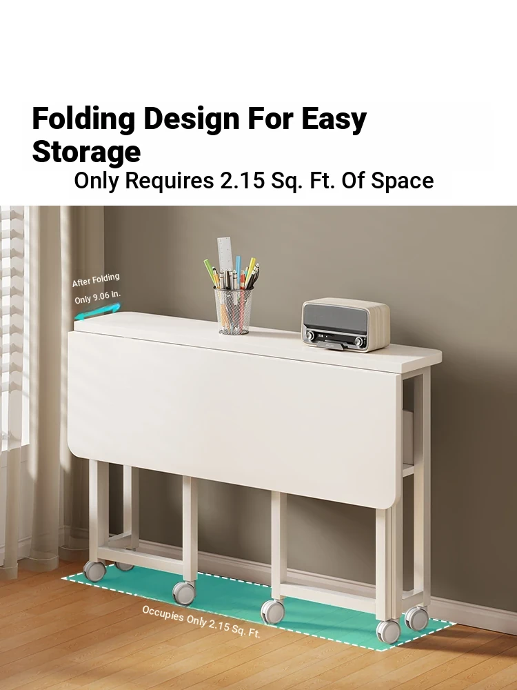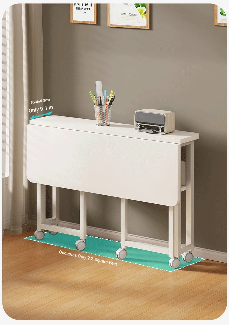 Portable Folding Computer Desk with Wheels - Stylish and Versatile Side Table for Home, Ideal Study Desk for Students, Compact Writing Desk, Perfect for Dining and Work!