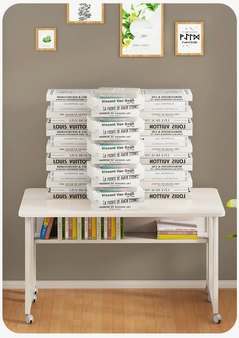 White desk bookshelf with wheels 80*58