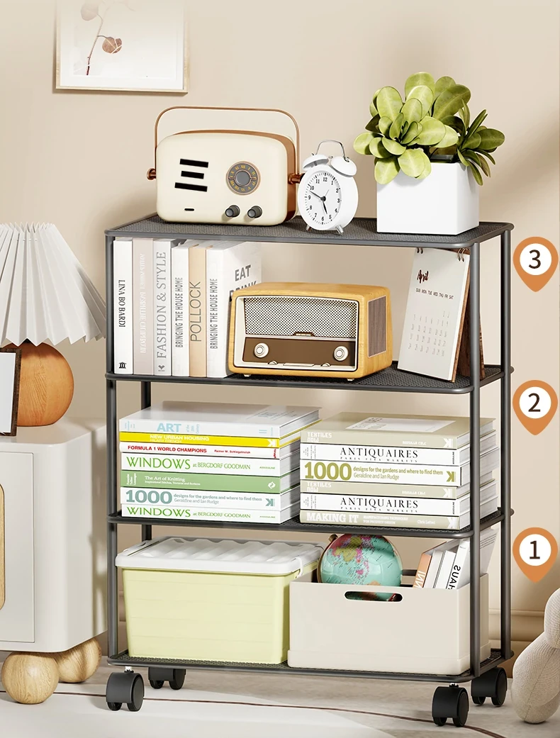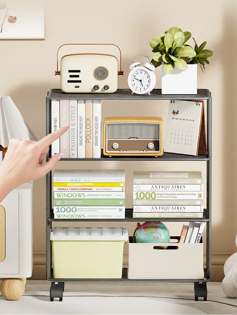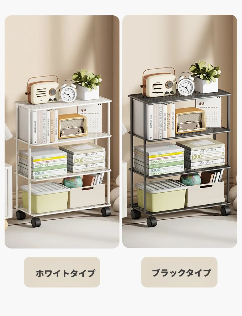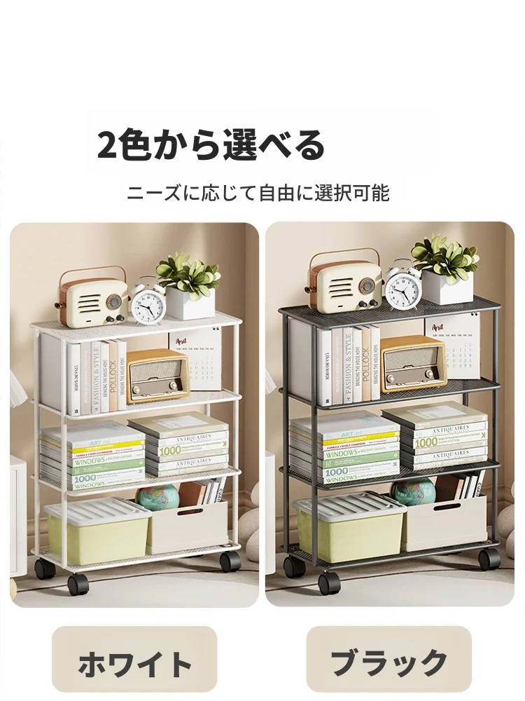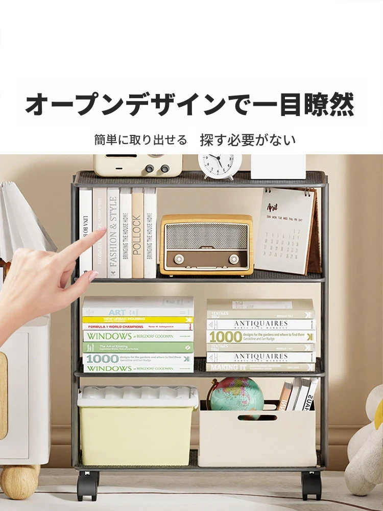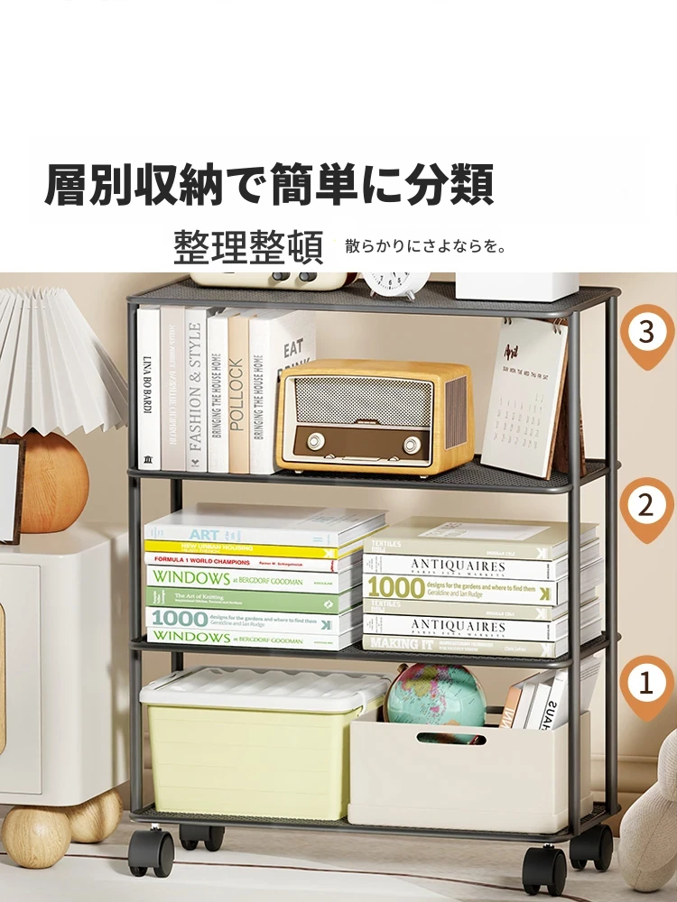 移動可能な多層式本棚!壁に寄せて使えるシンプルな収納ラック。おしゃれでコンパクト、デスク周りをスッキリ整理。あなたの本や小物を美しく収納!