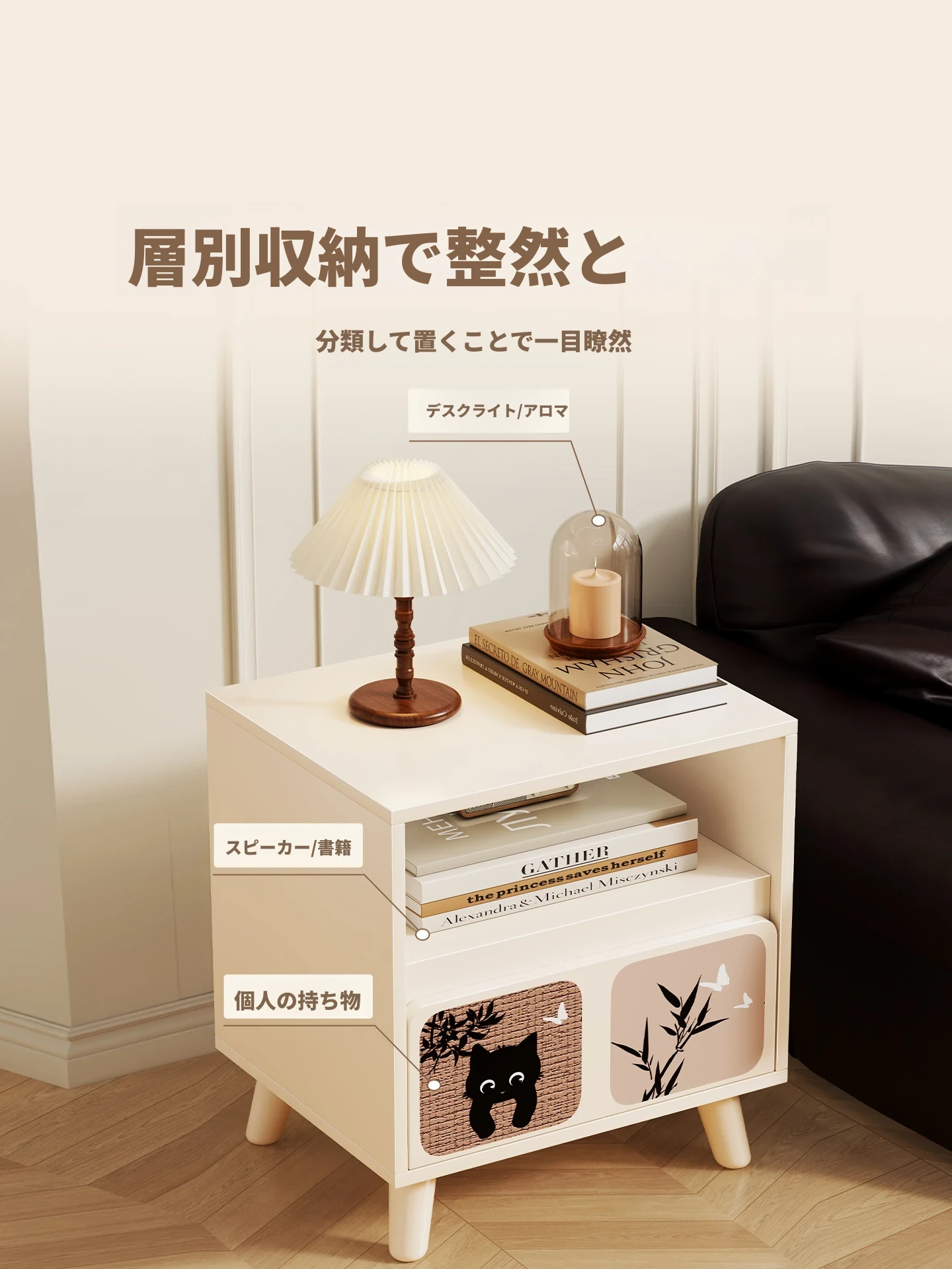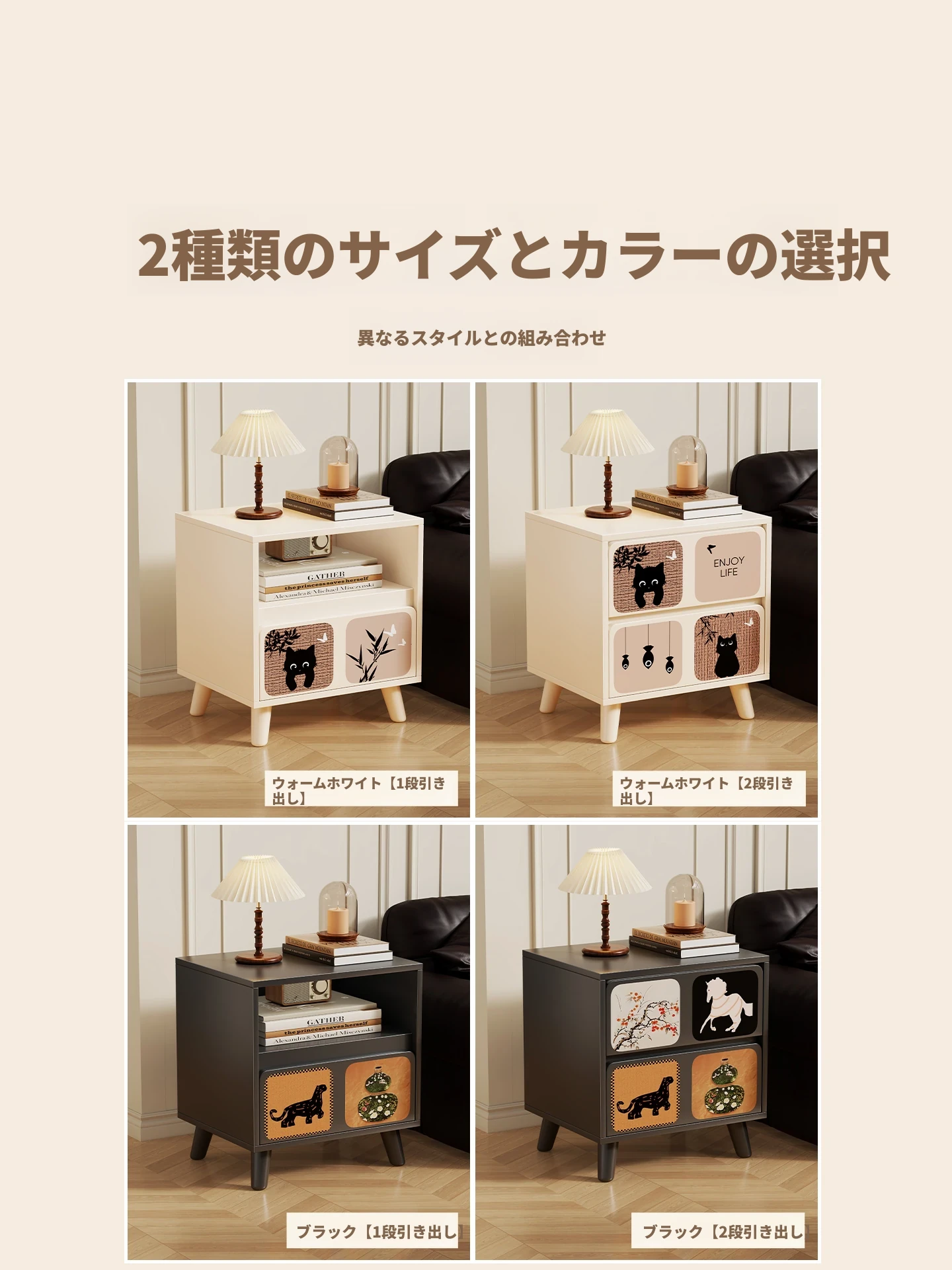 レトロかわいい猫⭐ウォームホワイト【ダブルドロワー】