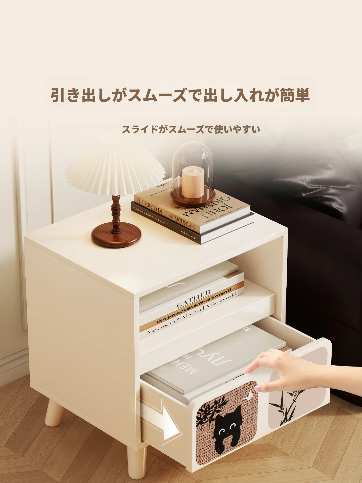 レトロかわいい猫⭐ウォームホワイト【シングルドロワー】