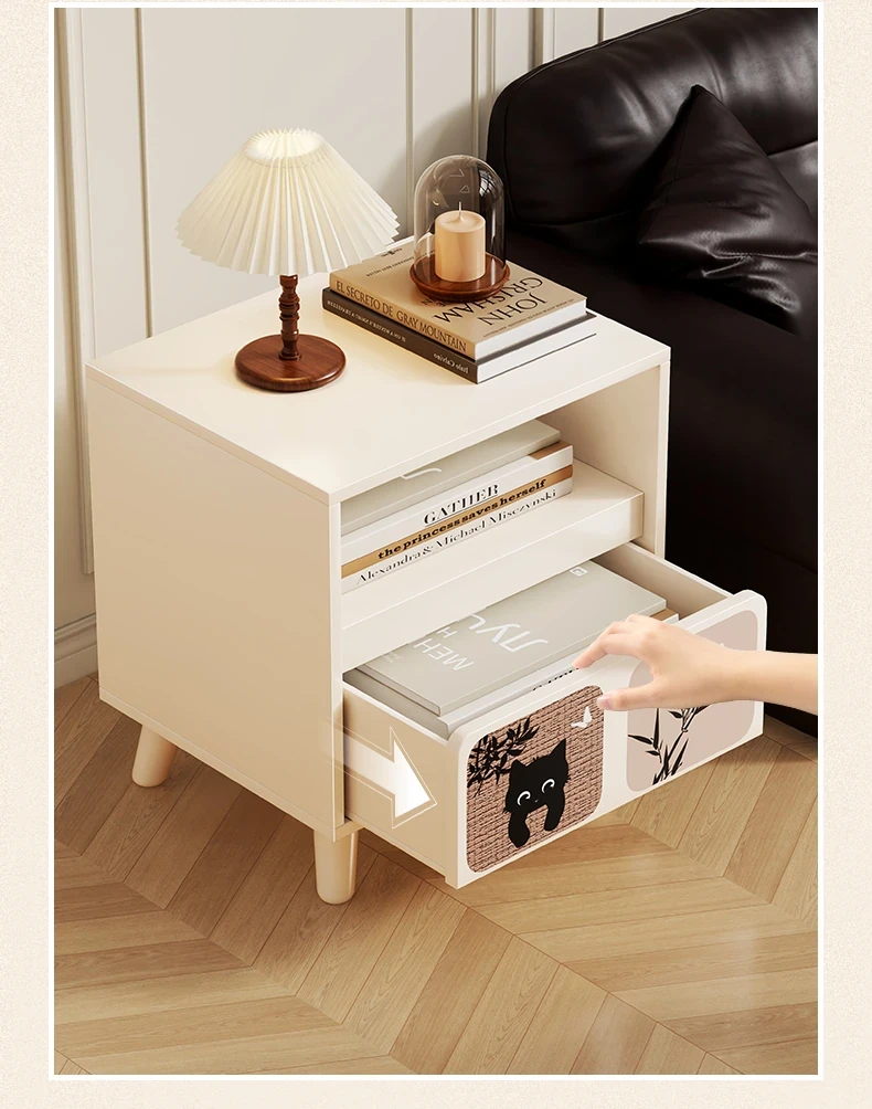 シンプルでスタイリッシュなソファサイドテーブル - 引き出し付き、リビングにぴったりの小型収納キャビネット!限られたスペースを有効活用し、おしゃれなインテリアを演出します。