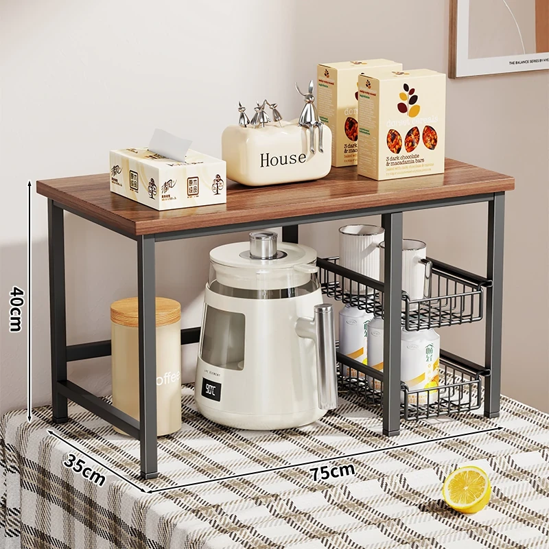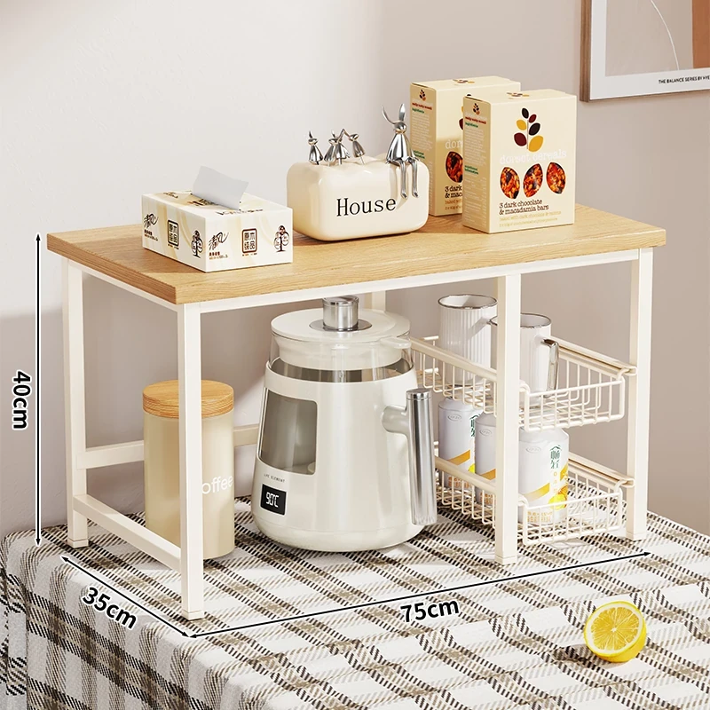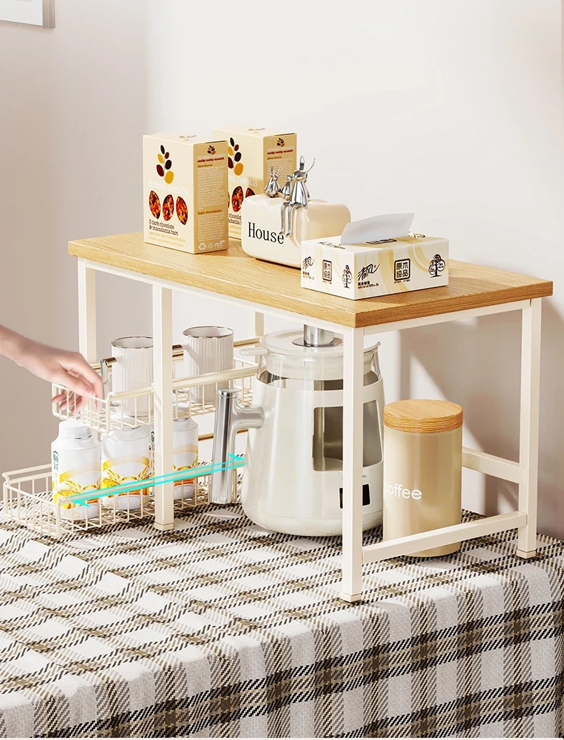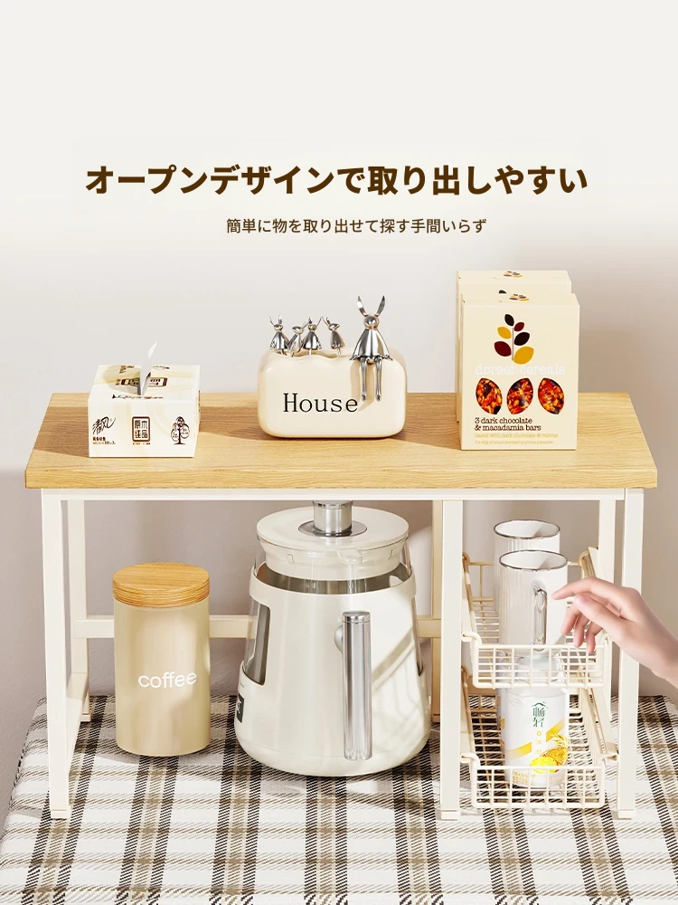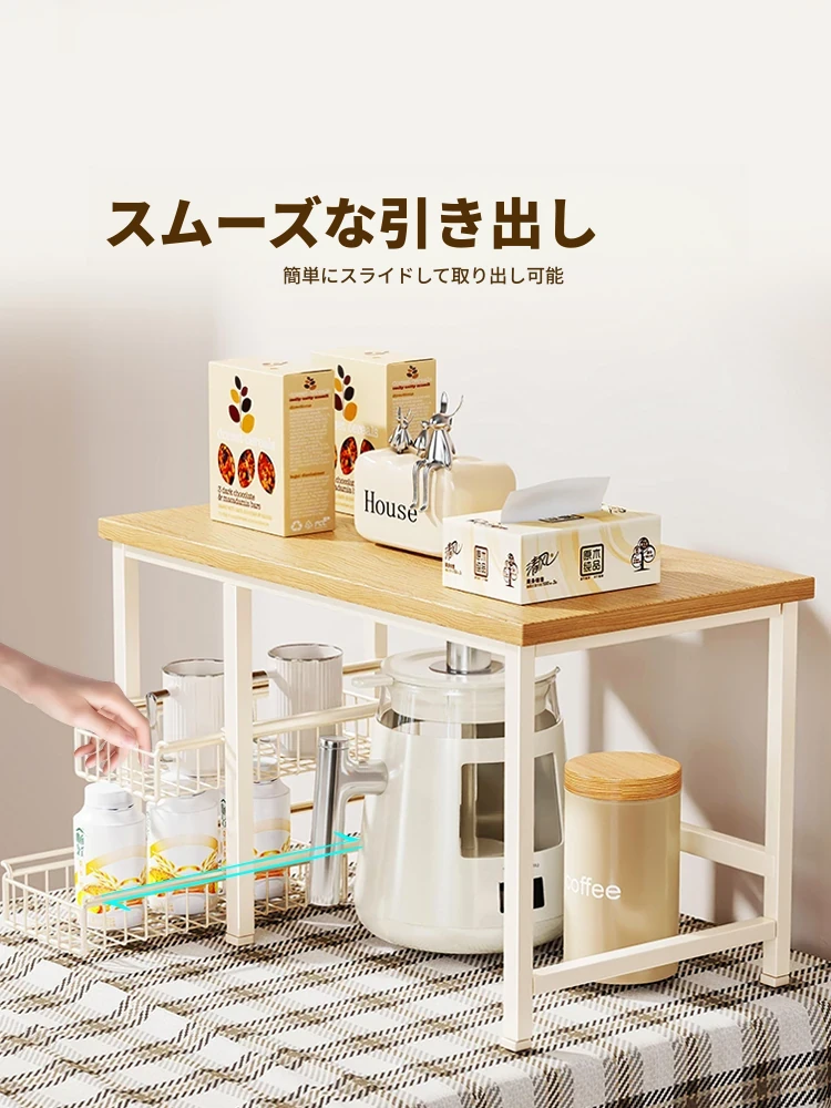 キッチンカウンター用多層収納ラック - 調味料や小物をスッキリ整理!引き出し式で使い勝手抜群のマルチシェルフ。コンパクトで省スペース、使いやすさを追求したデザイン!