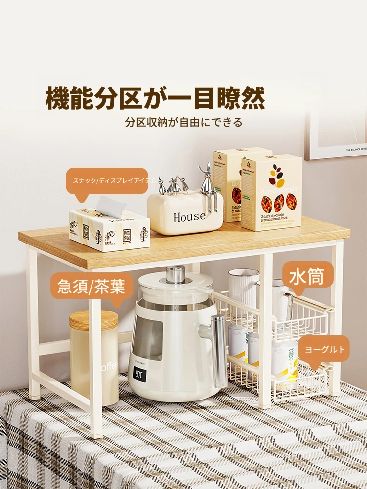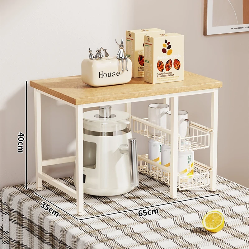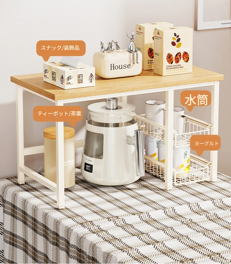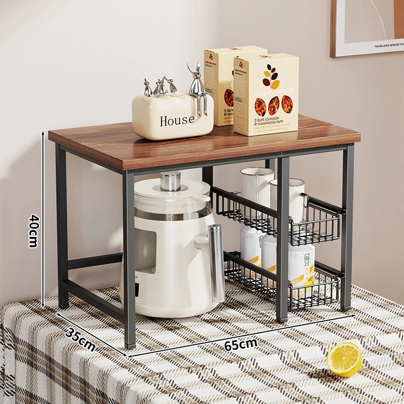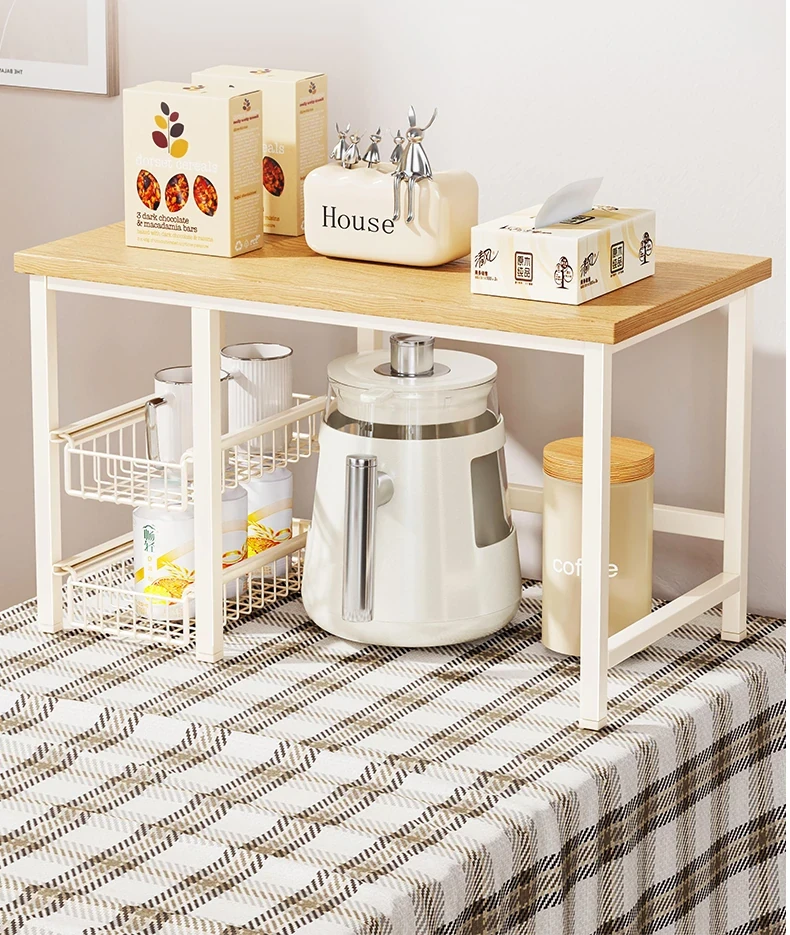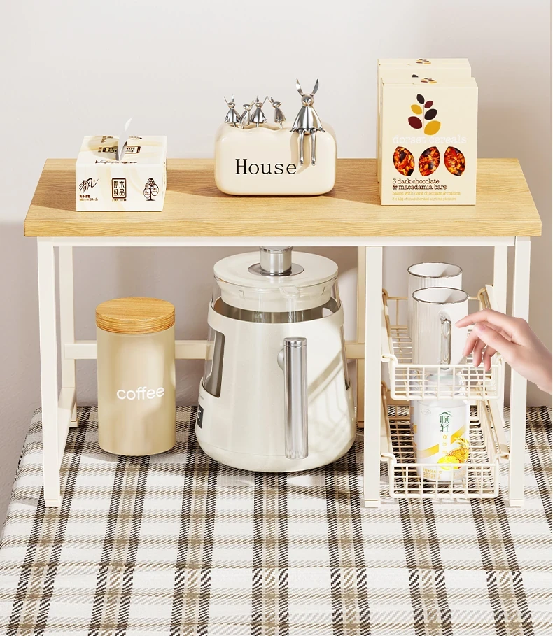 キッチンカウンター用多層収納ラック - 調味料や小物をスッキリ整理!引き出し式で使い勝手抜群のマルチシェルフ。コンパクトで省スペース、使いやすさを追求したデザイン!