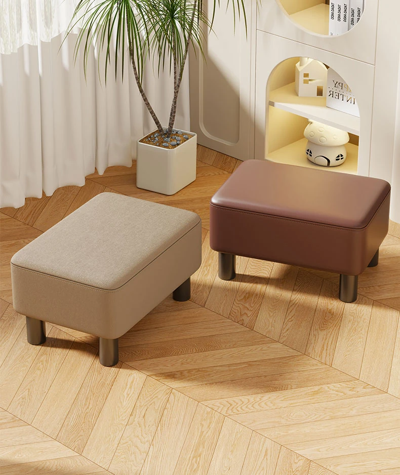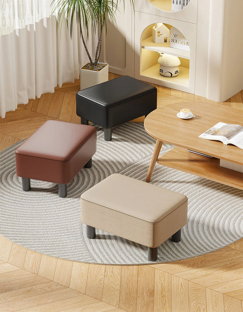 おしゃれでシンプルな皮製スツール!リビングや玄関にぴったりの小さな椅子。靴を履く時に便利な踏み台として、組み立て不要で手軽に使えます。快適な空間を演出するアイテムです!