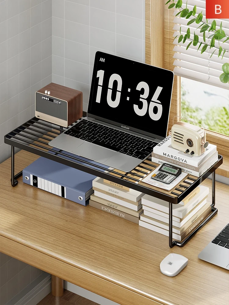 ディスプレイ昇降スタンド ノートパソコン用デスクトップ収納棚 自宅オフィスに最適なスペースを有効活用!書斎やデスク周りをスッキリ整理整頓する収納キャビネット