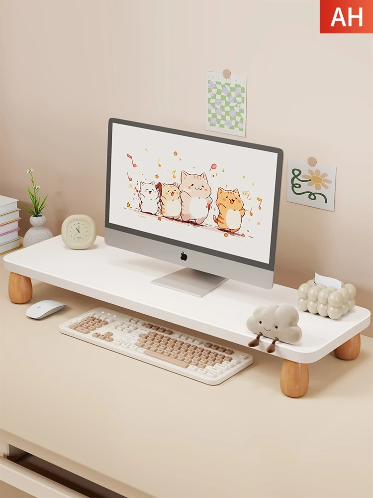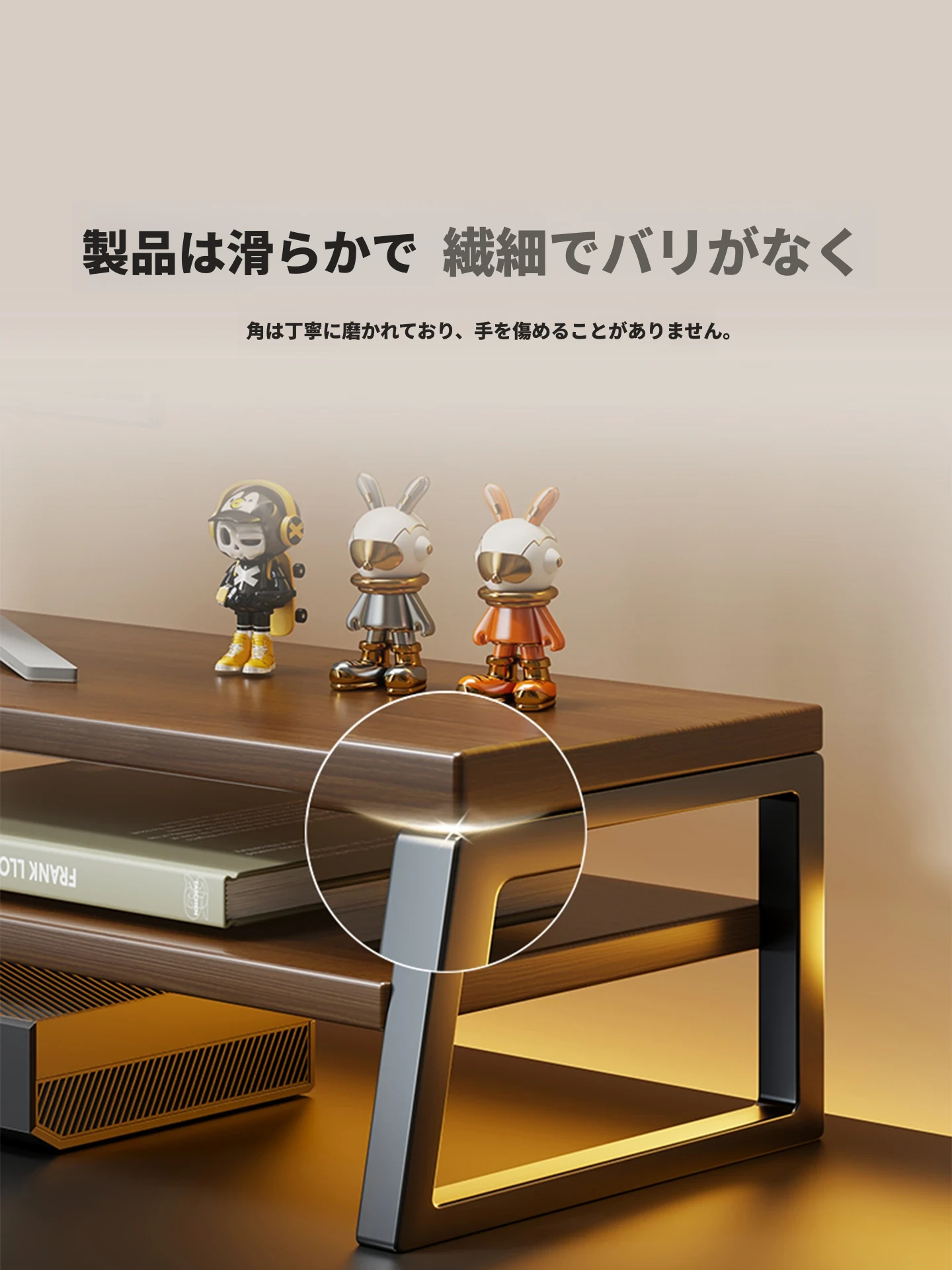 デスクトップモニター昇降スタンド - オフィスに最適な収納スペース付き!デスクをスッキリ整理し、快適な作業環境を実現します。デスクトップPCやモニターを美しく支える、スタイリッシュなアイテムです!
