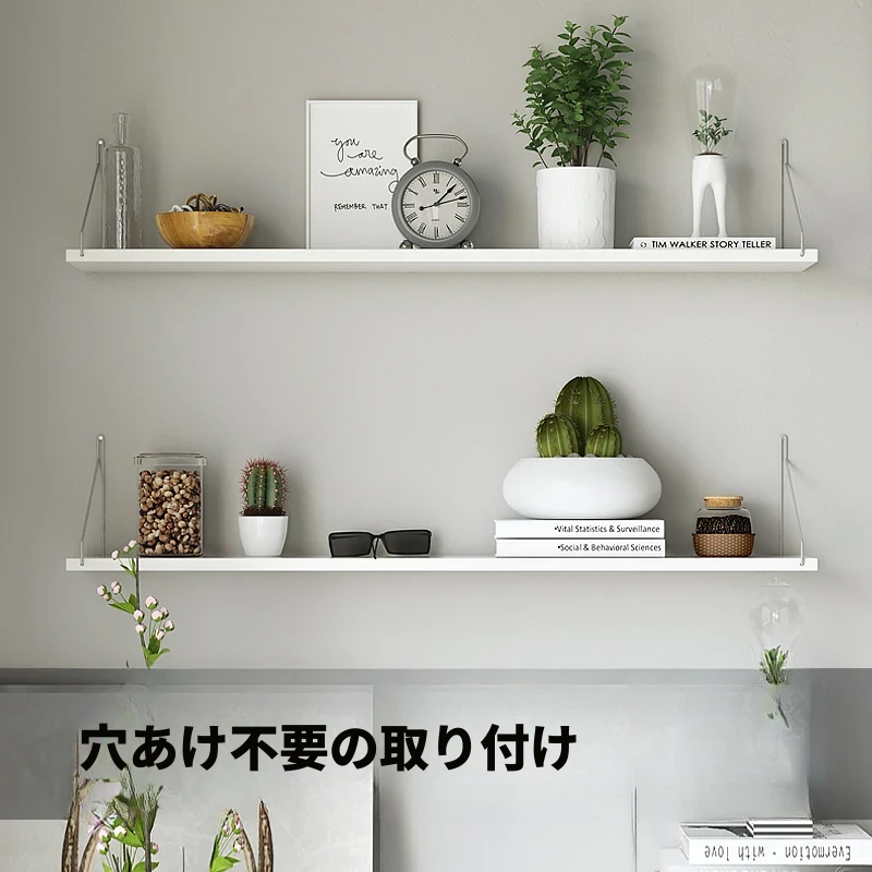 穴を開けずに簡単取り付け!スタイリッシュな無垢材のウォールシェルフ。リビングやベッドサイドに最適な本棚!シンプルなデザインでお部屋をすっきり演出。
