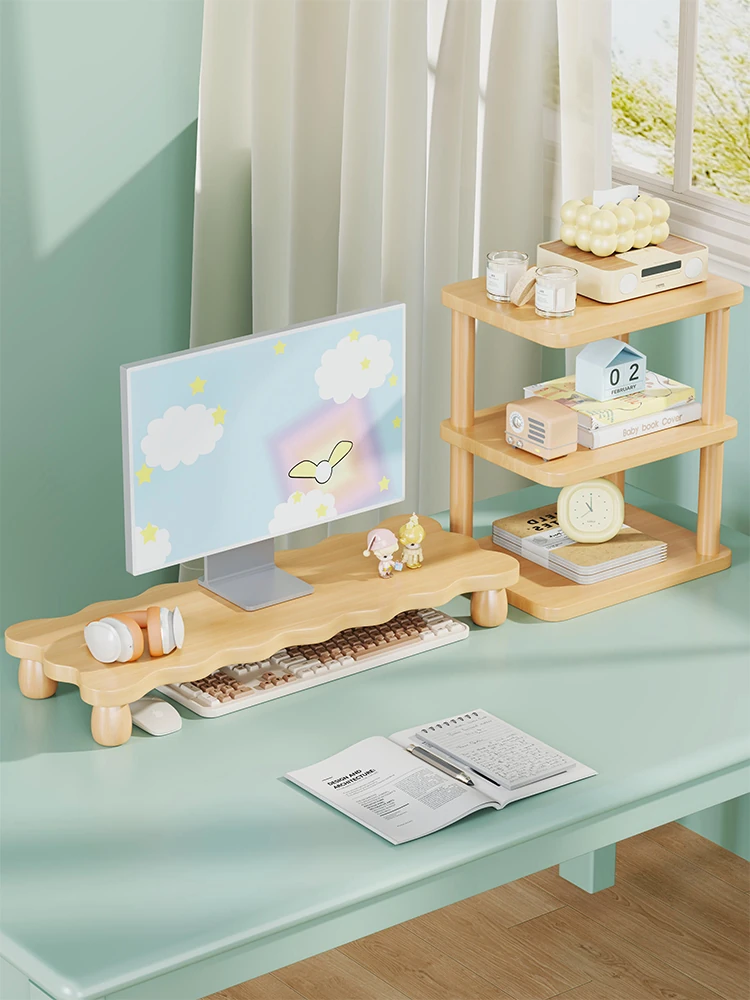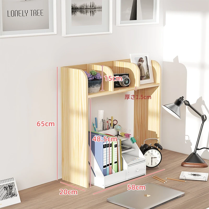 デスク用無垢材書棚 - オフィスデスクの収納に最適!子供向けデスク上ラック、大容量でスペースを有効活用!学生のための便利な置物ラック。