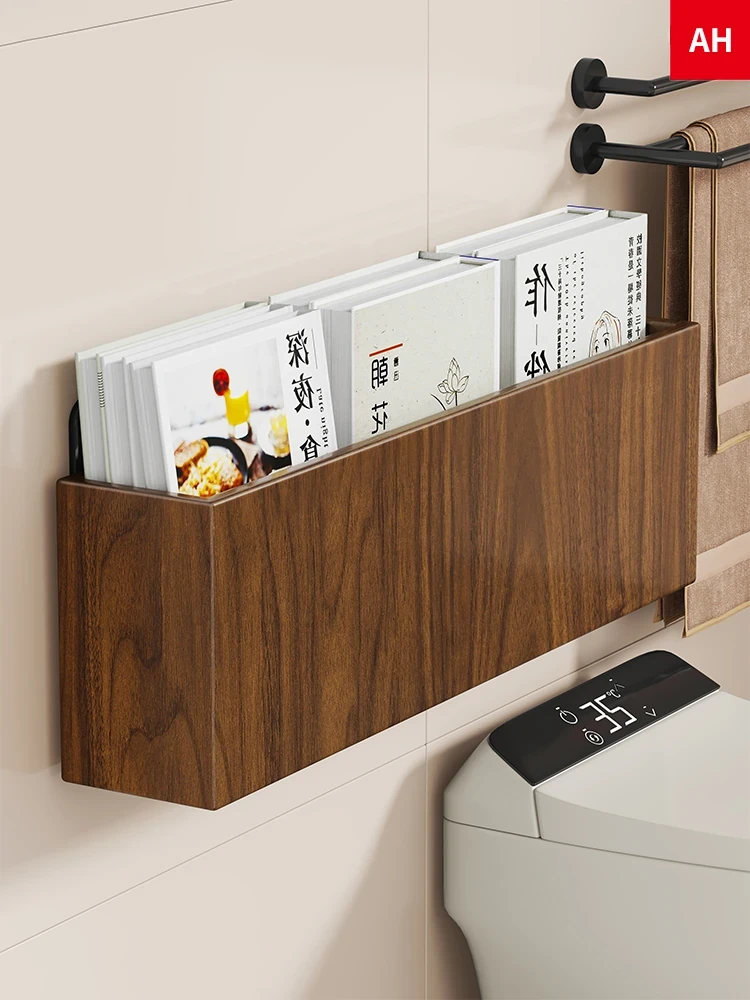 天然木製トイレ用サイドブックスタンド|壁掛け式でトイレ空間をおしゃれに!ネジ不要の簡単取り付け|本を収納して、ゆったりとしたトイレ時間を楽しむアイテム!
