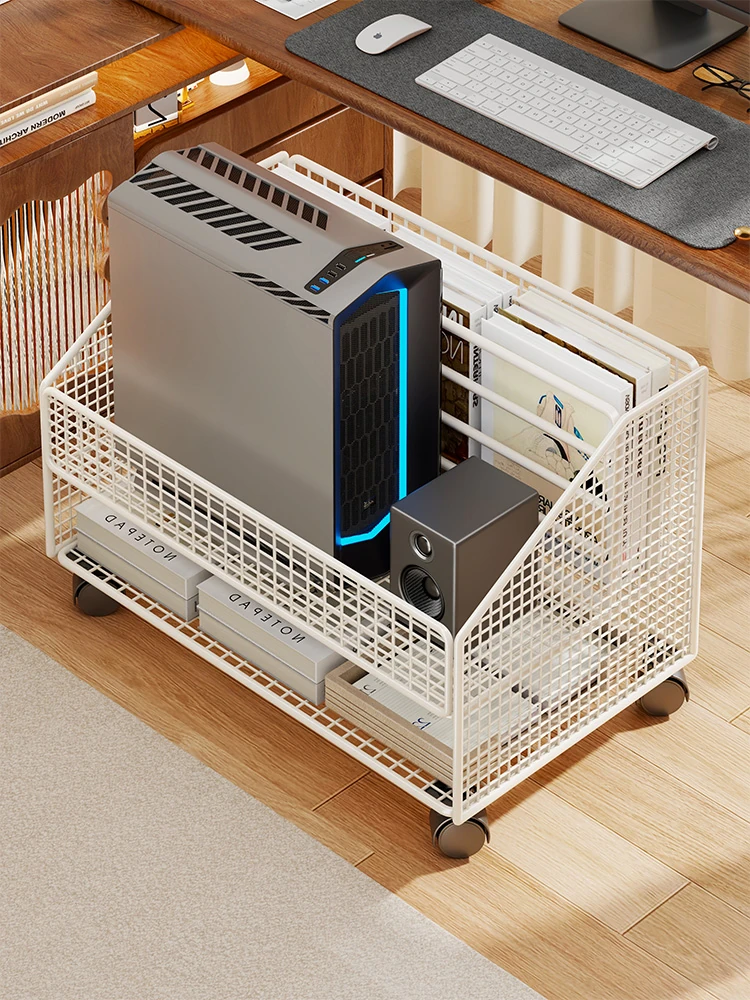 オフィスや家庭に最適!移動可能なデスク下収納パソコン本体スタンド - スペースを有効活用し、整理整頓を実現する便利なトレイ!