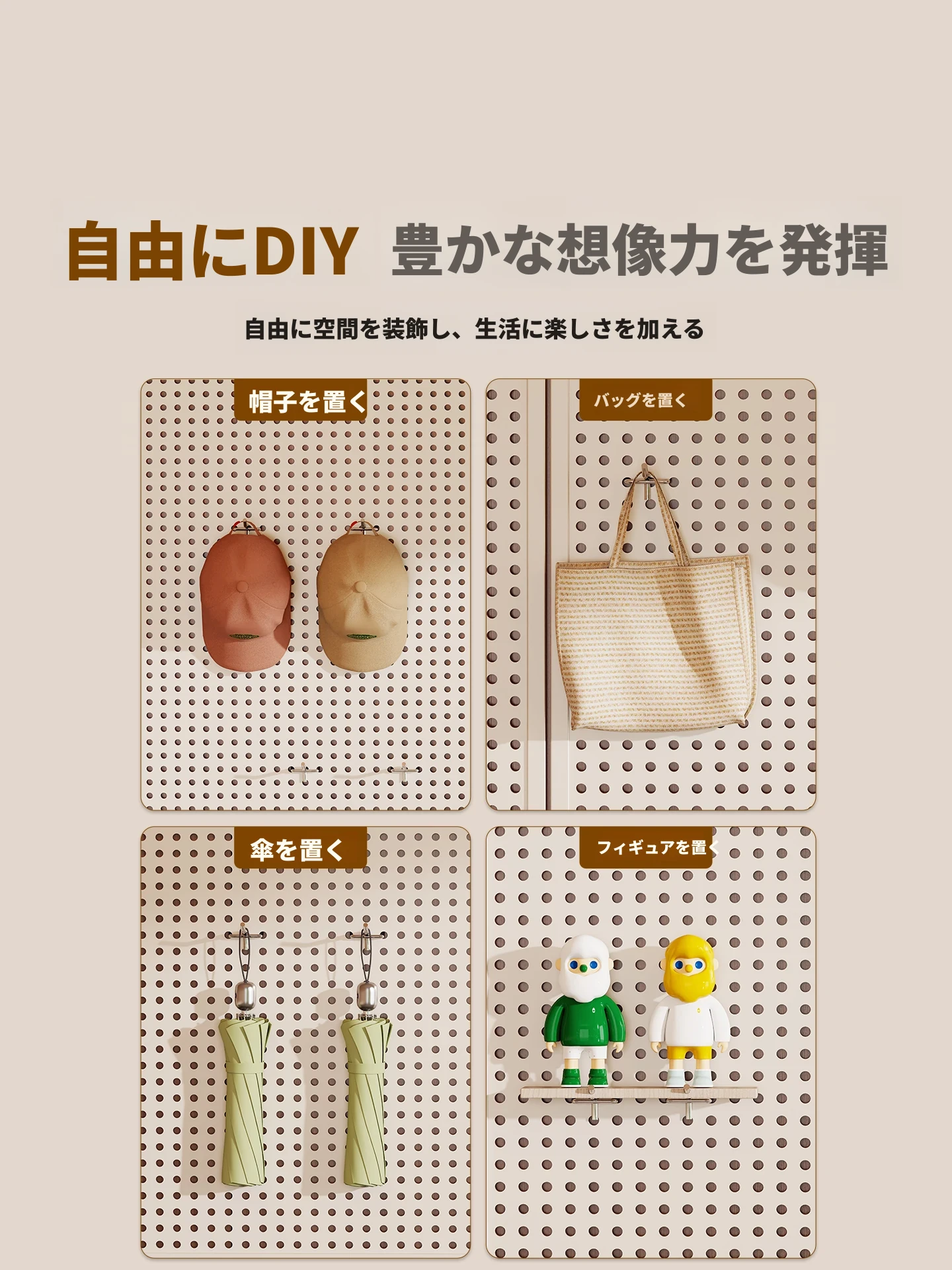 穴あきボード収納ラック|家のリビングに最適!穴を開けずに取り付け可能なスタイリッシュな壁掛け収納|多機能で使い勝手抜群のエントランスシェルフ