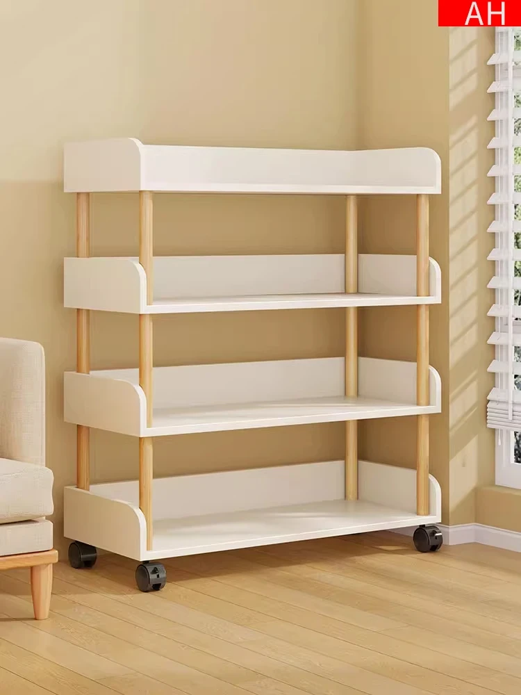 キャスター付きの多層ラック!リビングに最適な可動式本棚&学習デスクサイド収納。雑誌や装飾品を整理し、お部屋をすっきり美しく!