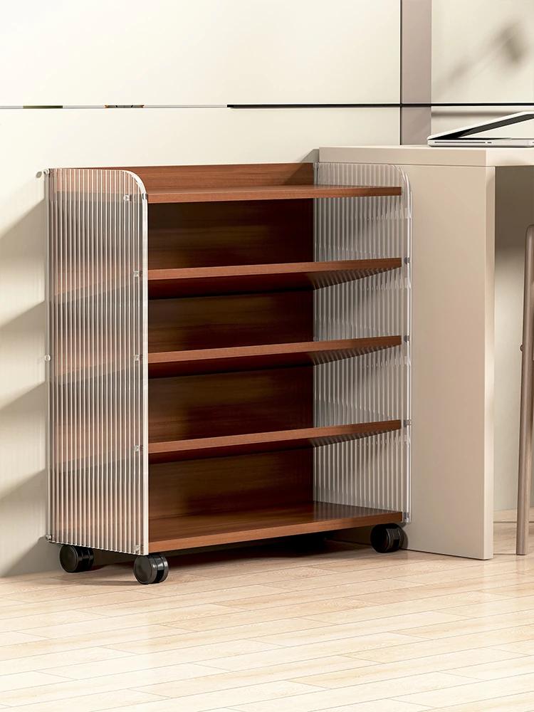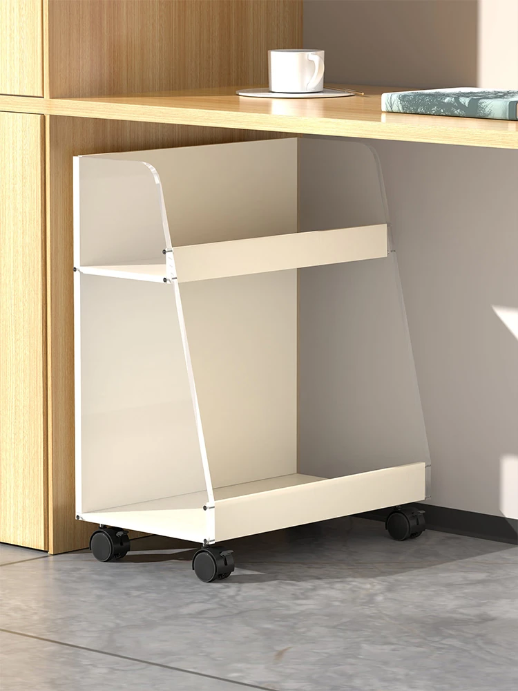 Multi-Layer Acrylic Book Rack with Wheels - Portable Under-Desk Book Storage Cart for Organizing Office Supplies and Books, Perfect for Small Spaces
