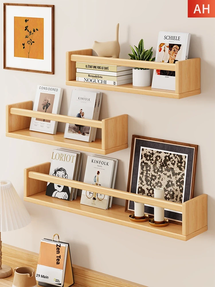 Solid Wood Wall-Mounted Bookshelf - Stylish Floating Shelf for Living Room, Elegant Wall Panel for Organizing and Displaying Items, Perfect for Modern Home Décor.