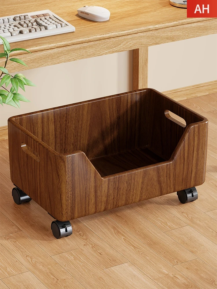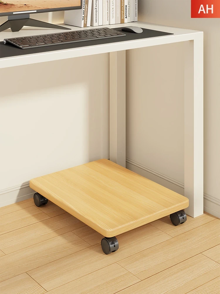 Solid Wood Universal Wheel Mobile Base Storage Box with Elevating Support for Computer Hosts - Rolling Storage Solution with Versatile Shelving and Easy Mobility