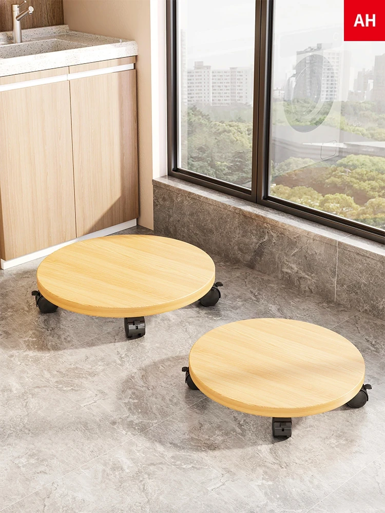 Solid Wood Round Flower Pot Tray with Universal Wheels - Sturdy Base for Easy Movement, Perfect for Flower Stands and Planters. Ideal for Indoor and Outdoor Use.