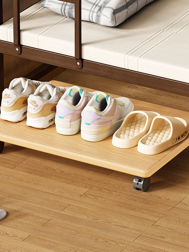 Space-Saving Wooden Shoe Rack with Pull-Out Shelves - Mobile Under-Bed Storage Solution for Dorms and Homes