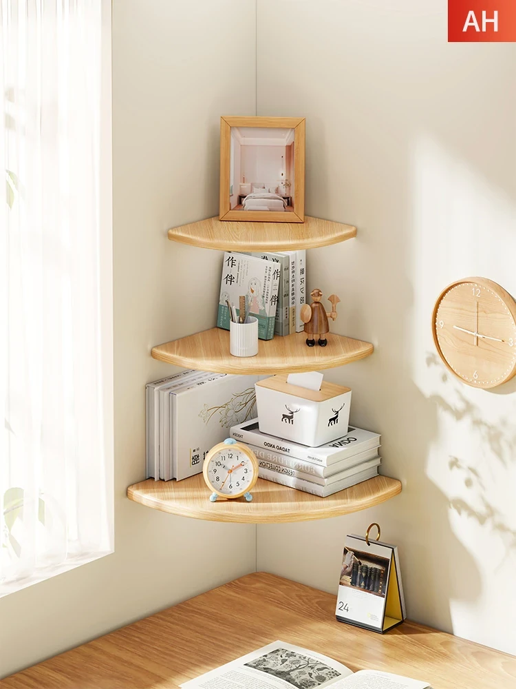 Solid Wood Corner Shelf - No Drill Wall-Mounted Fan-Shaped Shelving for Kitchen, Triangular Bookshelf, and Layered Storage Solution - Perfect for Maximizing Space and Adding Style!