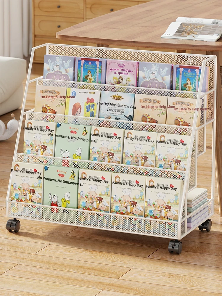 Kids' Reading Bookshelf - Portable Floor Storage Rack for Home, Easy-to-Move Picture Book Cabinet, Stylish Vertical Organizer for Reading Nook