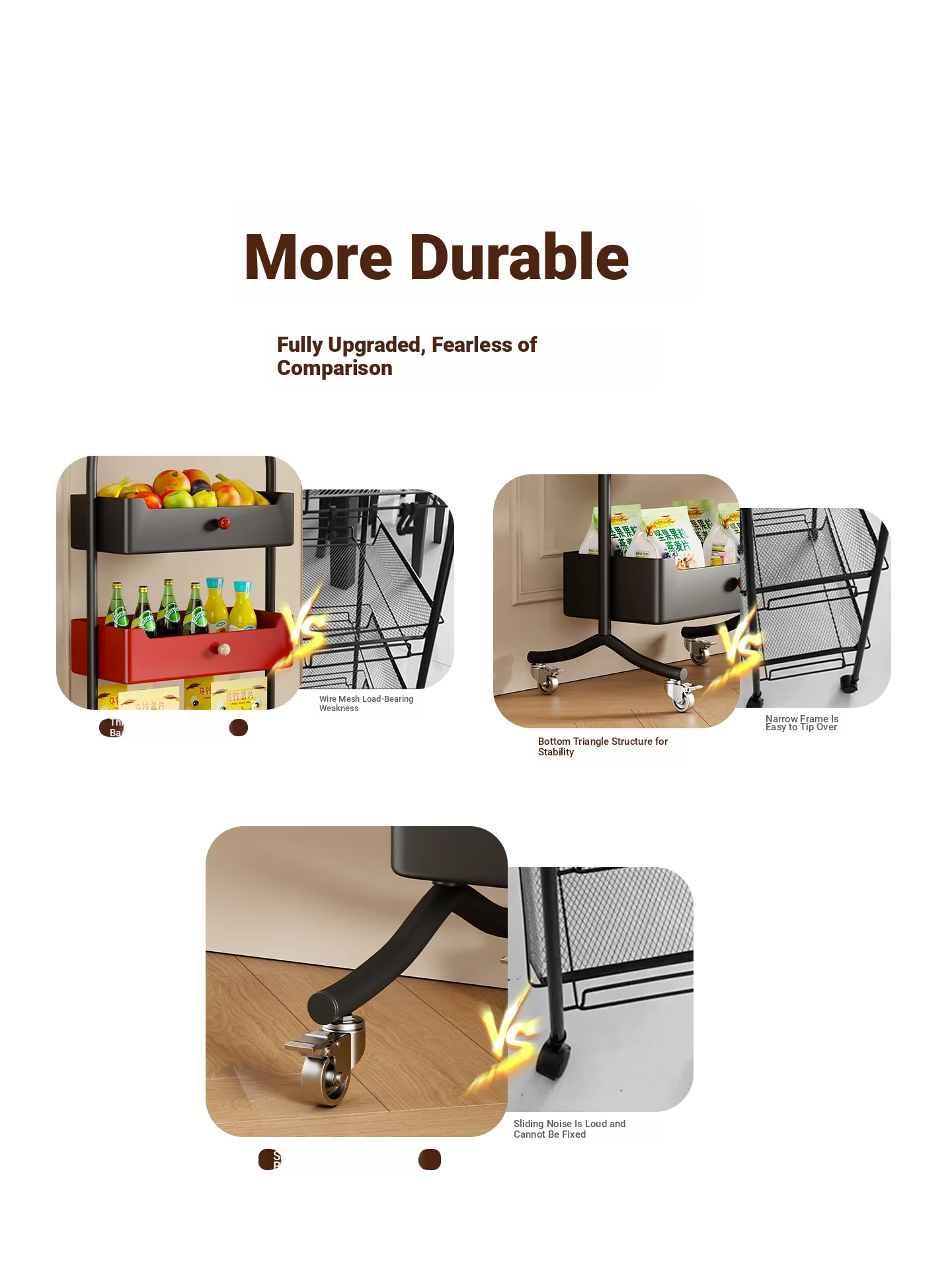 Multi-tier Snack Storage Rack - Versatile Floor Stand Narrow Cabinet with Wheels for Living Room and Kitchen, Perfect for Organizing Books and Snacks